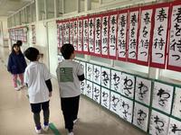 今日から校内書き初め展が始まりました。子どもたちは全校の作品を見て回りまりた。「すごい上手」「来年も楽しみ」と喜ぶ姿が見られました。