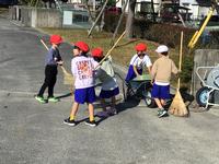 子供たちは、外庭掃除の道具を持って、「葉っぱをたくさん持ってくるね。」と言い、