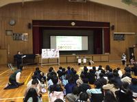 4年生は少しどきどきした表情で、講師の先生の話を聞いていました。