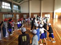 2年生と4年生ペアのクラスでは、フラフープくぐりをしました。