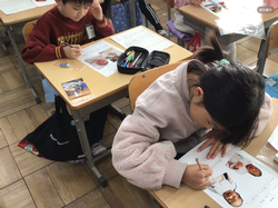 今週は生まれた頃の身長、体重を紙にまとめ、写真をはりました。