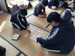 百人一首クラブでは、20枚ずつ札を覚え、切磋琢磨して取り合う姿が見られました。