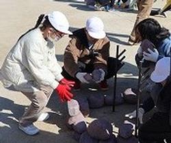 今の4年生は、来年度5年生になってすぐの4月に山の学習に出かけます。そこで、今日、野外活動の講師に先生をお呼びして、炉や薪の組み方を教えていただきました。