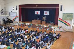 本日、令和7年度の修了式を行いました。児童は一年間の学びを振り返り、成長した姿で式に臨みました。校長先生からは努力をたたえる言葉と来年度への励ましがあり、子どもたちは真剣に聞いていました。