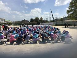 2時間目に、地震から火災が発生したという設定で、避難訓練が行われました。各クラスで、緊急放送を静かに聞く、地震がおさまるまで、机の中にもぐって身を守る、「前の人をおさない」「校舎内は、はしらない」「しゃべらない」「もどらない」「火・煙にちかよらない」の「おはしもち」を守って避難するなどのお話を聞いてから訓練が始まりました。どのクラスも落ち着いて、静かに避難することができました。