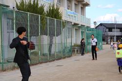一斉下校でキャットボールを披露