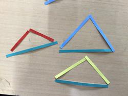 3年生は算数で二等辺三角形と正三角形について勉強しています。等しい長さの辺がいくつあるかに注目して、二等辺三角形や正三角形を見つけることができました。日常生活でよく目にする三角形の秘密をこれからもたくさん見つけられるといいですね。