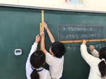 今日は、1mものさしを使って黒板や掃除道具入れなどの長さを測りました。