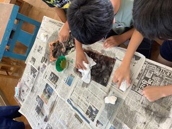 現在どの学年もおかざきっ子展の作品作りをしています。