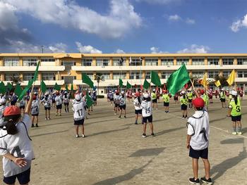 5年生は、来週の土曜日に行われる運動会に向けて、学年演技フラッグの練習に励みました。学年で動きをそろえようと、一人ひとりが真剣な表情で取り組みました。また、リレーの通し練習もあわせて行いました。競技中には自分のクラスを全力で応援し、競技後には静かに指示を聞いて行動するなどメリハリをつけて練習に臨む姿が見られました。本番での子供たちの姿が一層楽しみになりました。