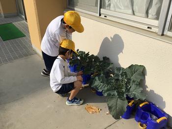 ブロッコリーは、普段食べているのは実ではなくてつぼみの部分なことや、葉っぱや茎もなべ物や温野菜サラダにして食べられることなどが、実際に育ててみてよく分かります。3学期には収穫したブロッコリーを使って、温野菜サラダを作るのが楽しみです。