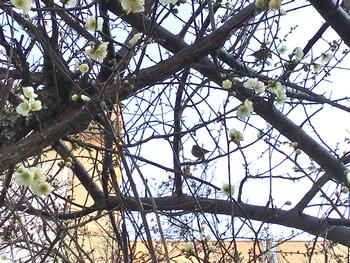 校庭の梅の花も少しずつ開き始め、花に集める小鳥たちもどこかうれしそうに見えました。