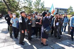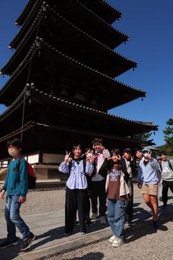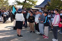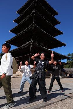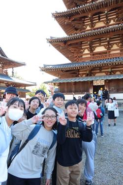 バスは予定通り移動していて、針テラスの休憩場所を通過し、子供たちは法隆寺を見学したようです。