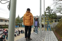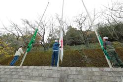 その2秒で掲揚しなければいけないので、ものすごい勢いで旗をあげます。