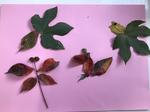 特別支援の1年生の児童は、校庭に落ち葉や小枝・木の実などを拾いに出かけ、教室に戻って紙の上に並べました。並べた作品を見合いながら互いに感想を言ったり、お話を作ったりして楽しく学習しました。