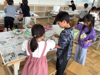 1年生の生活科「あきとともだち」では、どんぐりやまつぼっくりを使った遊びを考えています。今日は、年長児を招待する秋祭りの準備に取り組みました。一人ひとり役割に没頭する姿がありました。