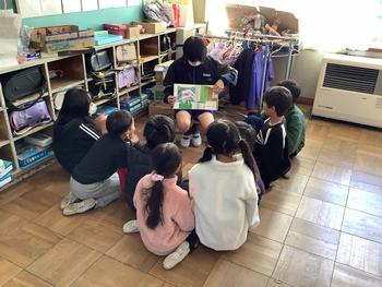 本日、6年生が1年生に絵本の読み聞かせを行いました。1年生は、普段優しくしてくれている6年生が絵本を読んでくれるということで、興味津々で話を聞いていました。