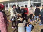 本日は学校でおもちパーティを開きました。各学年でもちを美味しく食べている中、6年生は実際に蒸したもち米を杵でつく体験をしました。一生懸命ついたもちを食べてみると、「いつも食べるもちと全然違う。」、「もちもちしていてとても美味しい。」と驚きと喜びの声があがり、2学期最後に貴重な思い出を作ることができました。
