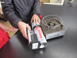 次の授業では、金属を温めたり冷やしたりしようと、授業の最後には実験用ガスコンロの使い方を練習しました。