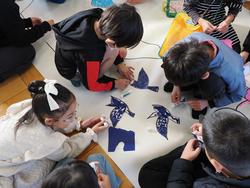 多くのお客さんを前に、緊張しながらも発表を頑張る姿、ちぎり絵や飾り作りなどで一生懸命働く姿が見られました。