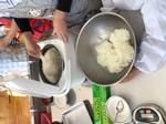 今日、5・6年生が、形埜小で収穫したお米、ミネアサヒで一口サイズのおにぎりを作り、全校児童に試食してもらいました。