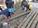 幹の直径を測った後、軽トラに積み込むまでの作業を体験しました。