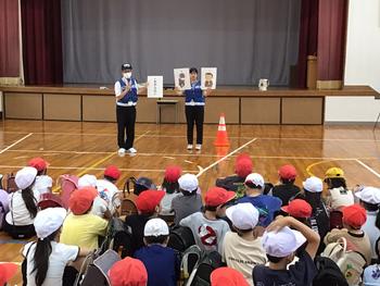 不審者にあってしまったときの対処の仕方を聞いたり、逃げ方を教わって実際に逃げたりしました。