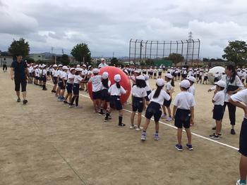 1・2時間目に、運動会の全校参加種目である「大玉送り」の練習を行いました。1~3年生は、転がし