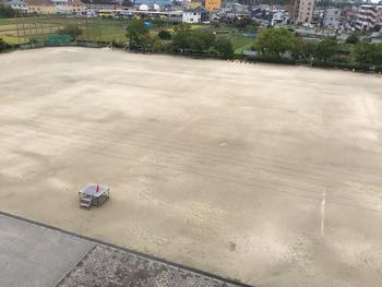 昨日の夜に降った雨で、運動場のところどころに水たまりがあり、1・2時間目は運動会の練習ができま