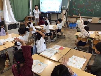 並べ方を説明しようとやる気になって、挙手をしている子がたくさんいました。