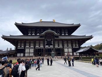 下段の写真は、修学旅行1日目の清水寺から京都市内を眺めた景色と、2日目の東大寺大仏殿の様子です。