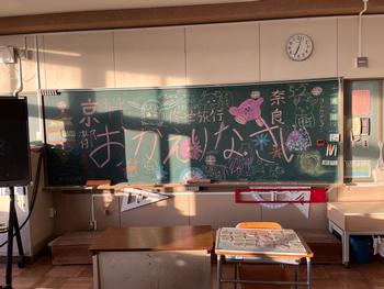 修学旅行が終わり、6年生は今日はゆっくり登校です。教室の黒板には、5年生から「おかえりなさい」のメッ