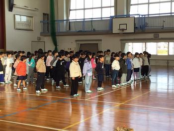 1年生が、北野保育園と長瀬台幼稚園の園児の子たちとの交流会を行いました。体育館に園児を招いて、