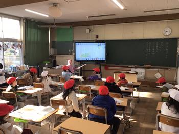 し合っていました。電子黒板を使いながら、発表していました。