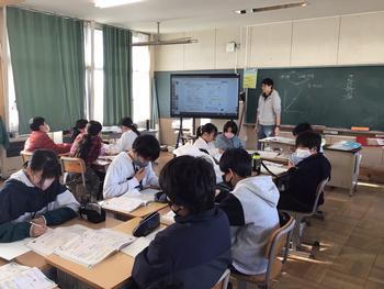 6年1組では、算数「比例と反比例」で、比例のグラフについて考えていました。チーム隊形にはしていま