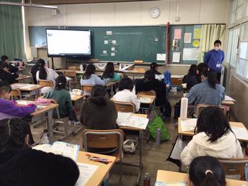 養護教諭(保健の先生)による特別授業です。成長していく段階で起こる変化について、真剣に学んでいる