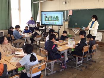 3年1組では、外国語活動の時間に絵カードを使ったゲームに取り組んでいました。いつも楽しく英語