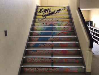 本日、職員室横の階段に、突如階段アートが出現しました。本年度2回目のことです。今回は、卒業を