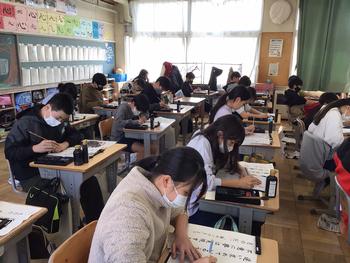 授業もまだまだ続きます。6年3組は体育科でサッカーを、6年1組は書写をがんばっていました。元気に