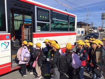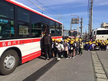 の移動です。2年生全員が路線バスに乗るということで、名鉄バスさんが、1台増便してくださいました。