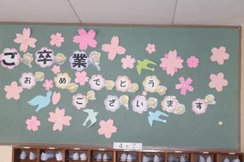 卒業式が明日になりました。午後から5年生の子たちが一生懸命に準備を進めてくれ、式の会場や教室は