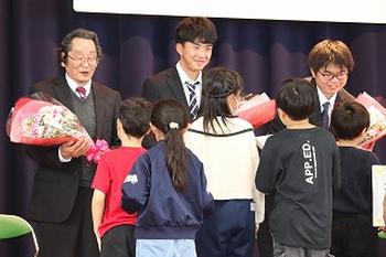 15日の午後、退任式がありました。3月まで北野小学校を支えてくださっていた先生方とのお別れの時間になりました。子どもたちからの花束・手紙の贈呈では、たくさんの拍手に包まれ、とても温かい会になりました。