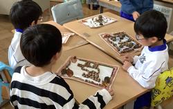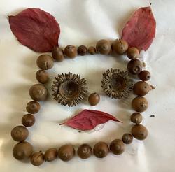 1年生の生活科「あきみつけ」で見つけた木の実や木の葉を使って作品を作りました。