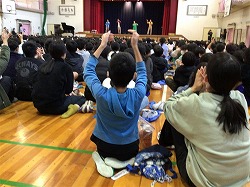 今日は5時間目に全校でカメレ音楽隊の演奏を聴きました。