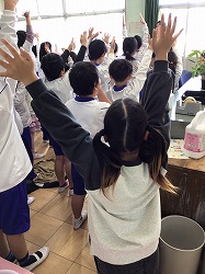 子どもたちは、保健の先生から、体をほぐす方法を教わっていました。
