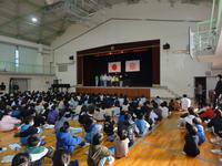 今朝、全校集会が行われました。校内マラソン大会をはじめ、作文、理科、家庭科、社会、図工などの作品の表彰がありました。