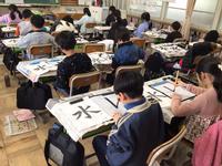「水」という文字を書き、とめ、はね、はらいに気をつけました。