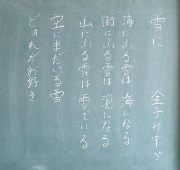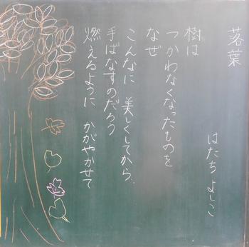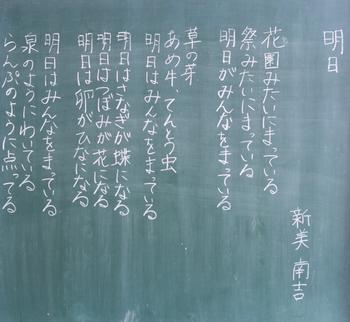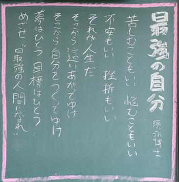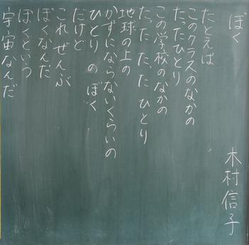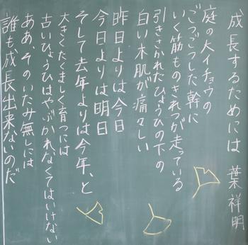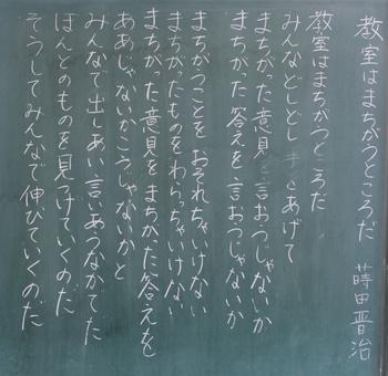 今年度も、教室の背面黒板には、担任の思いが込められた詩が書かれています。それぞれの教室から、それぞれのクラスにあった「教室のい・ぶ・き」が聞こえてきます。