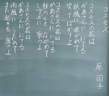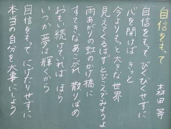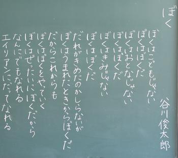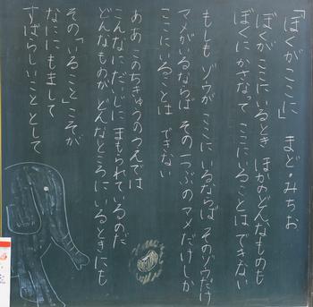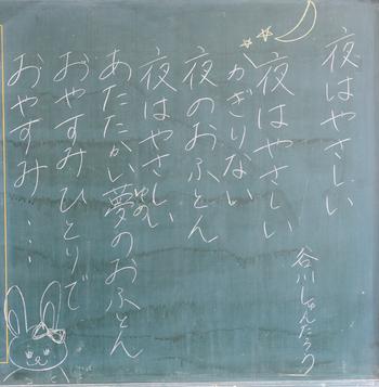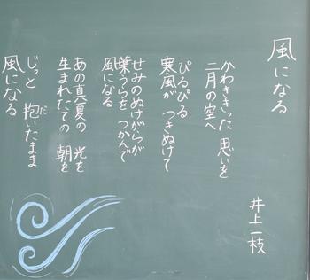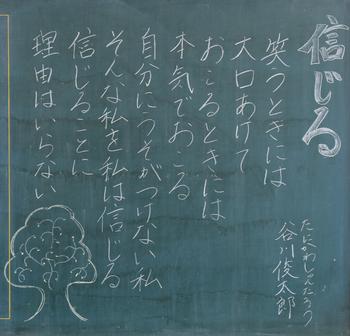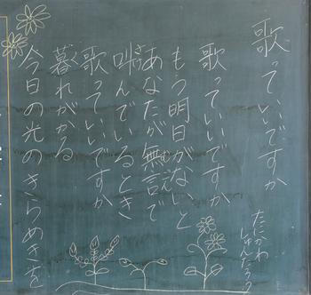 今年度も、教室の背面黒板には、担任の思いが込められた詩が書かれています。それぞれの教室から、それぞれのクラスにあった「教室のい・ぶ・き」が聞こえてきます。