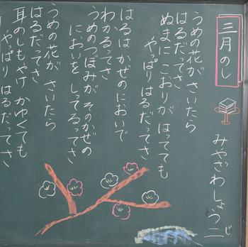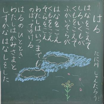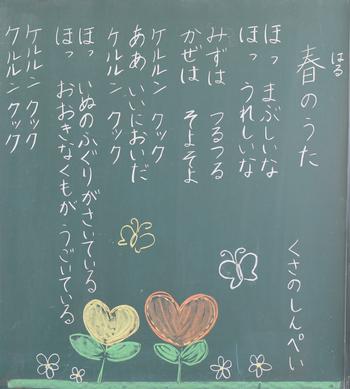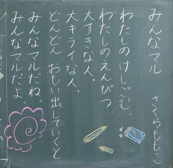 今年度も、教室の背面黒板には、担任の思いが込められた詩が書かれています。それぞれの教室から、それぞれのクラスにあった「教室のい・ぶ・き」が聞こえてきます。